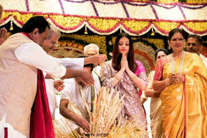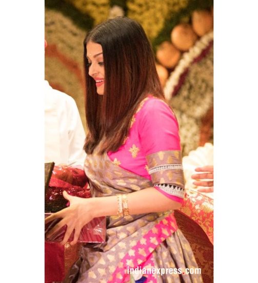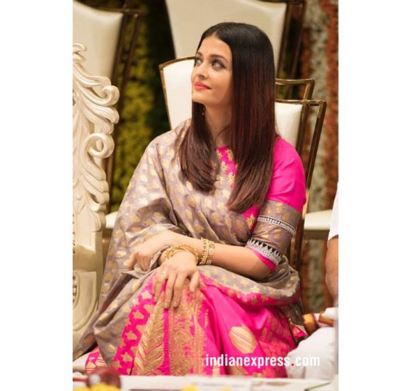 या कार्यक्रमात साऱ्यांच्याच नजरा फक्त आणि फक्त ऐश्वर्यावरच खिळल्या होत्या. या कार्यक्रमासाठी तिने खास गुलाबी रंगाचा ड्रेस घातला होता. या ड्रेसची खासियत म्हणजे या ड्रेसची ओढणी तिने साडीच्या पदरासारखी घेतली होती. फॅशन दीवा म्हणून ओळखल्या जाणाऱ्या ऐश्वर्याच्या गुलाबी साडीवर सोनेरी रंगाची काट तिचं सौंदर्य अजूनच खुलवत होती. कमीत कमी मेकअप- आणि दागिने घातलेली ऐश्वर्या कोणत्याही अप्सरेपेक्षा कमी दिसत नव्हती हे मात्र खरं.
