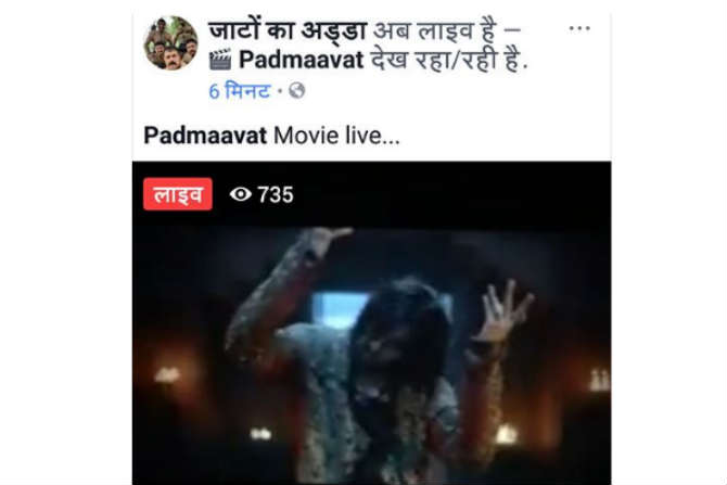 फेसबुकवरील ‘जाटों का अड्डा’ या पेजवरून ‘पद्मावत’ लाइव्ह करण्यात आला. फक्त ५३ मिनिटांच्या या लाइव्हला तब्बल एक लाख २९ हजार व्ह्यूज, सात हजारांहून अधिक शेअर्स आणि ८ हजार ८०० लाइक्स मिळाले. फेसबुकवरून हा व्हिडिओ सध्या काढून टाकण्यात आला असून संबंधित व्यक्तींवर आयटी अॅक्ट, कॉपी राईट अॅक्ट अंतर्गत कारवाई होऊ शकते अशी माहिती सायबर गुन्हे आणि सायबर सुरक्षातज्ज्ञ अॅड. प्रशांत माळी यांनी दिली. इतकेच नव्हे तर लीक झालेला व्हिडिओ शेअर करणाऱ्यांनाही ३ वर्षांचा तुरुंगवास आणि ५ लाख रुपये दंड भरावा लागू शकतो. त्यामुळे शेअर करणाराही यामध्ये तितकाच दोषी ठरतो.
