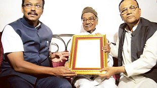 विनोद तावडे यांच्या उपस्थितीत राज्य सरकारतर्फे ज्येष्ठ समीक्षक प्रा. रा. ग. जाधव यांना िवदा करंदीकर जीवनगौरव पुरस्कार प्रदान करण्यात आला.