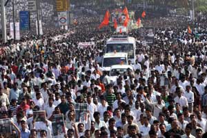 शिवसेनाप्रमुख बाळासाहेब ठाकरे यांना अखेरचा निरोप देण्यासाठी दादरच्या शिवसेना भवनाजवळील परिसर शिवसैनिकांच्या अभूतपूर्व अशा गर्दीने फुलून गेला होता. बाळासाहेबांच्या सभा,…