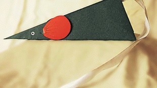 साहित्य : काळा, पिवळा, पांढरा कागद (कार्डपेपर), कात्री, पंच मशीन, काळा स्केचपेन, सॅटिन रिबीन, गम.