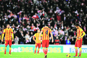सेस्क फॅब्रेगसने केलेल्या एकमेव गोलाच्य बळावर बार्सिलोना संघाने १० जणांसह खेळावे लागलेल्या सेल्टिक फुटबॉल क्लबवर १-० असा निसटता विजय मिळवला.
