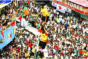 ‘गोविंदा रे गोपाळा..’ म्हणत लाखालाखांच्या बक्षिसासाठी चौकाचौकांत थर जमवायचे. वरच्या थरावर एखाद्या बालगोविंदाला चढवून त्याच्याकडून हंडी फोडायची..