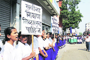 शिक्षणमंत्री विनोद तावडे यांनी दिलेल्या आश्वासनानंतर विधिमंडळाच्या पहिल्या दिवशी शिक्षकांच्या विविध मागण्यांसाठी उपोषणाला बसलेले शिक्षक