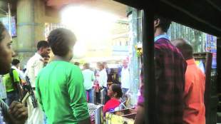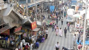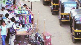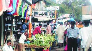 पादचाऱ्यांना चालण्यासाठी जागा नाही. तरीही फेरीवाले रस्ते अडवून व्यवसाय करीत आहेत.