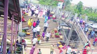 रेल्वे स्थानकाच्या पादचारी पुलावर सध्या मोठय़ा प्रमाणावर भाजी आणि फळ विक्रेत्यांनी बस्तान मांडले आहे
