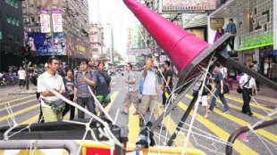 हाँगकाँगमधील लोकशाहीवादी निदर्शकांना रस्त्यांवरून हटविण्यासाठी अधिकाऱ्यांनी प्रयत्न सुरू करण्याचे संकेत मिळाल्यामुळे मीरपूड बाळगलेल्या सशस्त्र पोलिसांचा निदर्शकांशी संघर्ष उडाला.