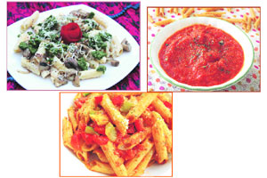 मोठय़ा पातेल्यात पाणी तापवून त्यात पास्ता आणि मीठ घालावे. पास्ता शिजवून घ्यावा. पास्ता शिजला की पाणी काढून टाकावे.