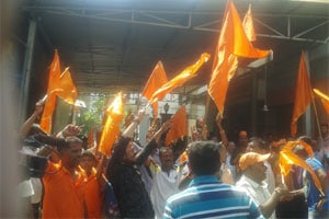 गेल्या विधानसभा निवडणुकीचे निकाल जाहीर होत असताना शिवाजी पार्क येथील राज ठाकरे यांच्या कृष्णभुवन या निवसास्थानासमोर मनसेच्या शेकडो कार्यकर्त्यांनी जल्लोष…