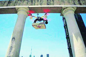 ड्रोनचा वापर करून पिझ्झाची डिलिव्हरी करण्याची महत्त्वाकांक्षी चाचणी मुंबईतील फ्रान्सेस्को पिझेरीयातर्फे करण्यात आली.