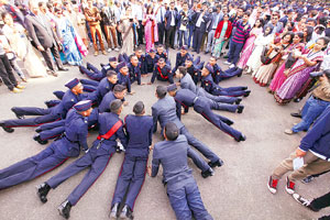 ‘कदम कदम बढाये जा’, ‘सारे जहाँसे अच्छा’, ‘जननी जन्मभूमी’ या गीतांच्या धूनवर छात्रांचे लयबद्ध संचलन.. एमआय-१७-व्ही ५ हेलिकॉप्टर, सुपर डिमोना…