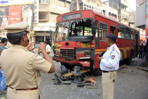 लक्ष्मी रस्त्यावरील शगुन चौकात रविवारी सकाळी साडेदहा वाजता ब्रेक निकामी झालेल्या पीएमपी बसने पादचारी आणि एका रिक्षाला धडक दिली.
