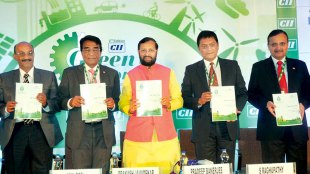 पर्यावरण मंत्री प्रकाश जावडेकर यांचे उच्चस्तरीय बैठकीसाठी येथे आगमन झाले,