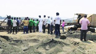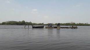 डोंबिवली पश्चिमेतील मोठागाव येथील रेतीबंदरात बेकायदेशीररीत्या रेती उत्खननाचे काम सुरू आहे.
