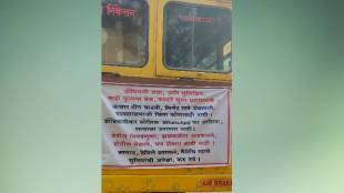 विद्यानिकेतन शाळेच्या शालेय बसवर सुशिक्षित डोंबिवलीकर, राजकीय मंडळींच्या डोळ्यात झणझणीत अंजन घालणारा फलक झळकत असल्याने हा फलक वाचण्यासाठी पादचाऱ्यांची झुंबड…