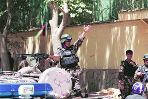 अफगाणिस्तानची राजधानी काबूलमधील अध्यक्षीय प्रासादावर मंगळवारी तालिबान्यांनी शक्तिशाली हल्ला केला.