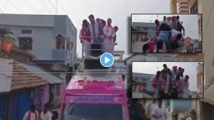 गाडीच्या छतावर बीआरएसचे नेते केटीआरसह अनेक नेते उपस्थित होते.