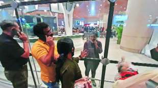 विमानतळाबाहेर पडताच नातेवाईकांनी विद्यार्थ्यांना गराडा घातले. तसेच पुष्पगुच्छ देऊन स्वागत करण्यात आले.