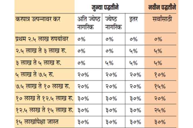 या वर्षीच्या अर्थसंकल्पात प्रथमच करदात्याला (वैयक्तिक आणि हिंदू अविभक्त कुटुंब) कररचनेच्या नवीन पद्धतीचा पर्याय देण्यात आला. कररचनेच्या नवीन पर्यायामुळे करदात्यांचा संभ्रम वाढला आहे. या नवीन पद्धतीचा लाभ नेमका कोणाला होतो? नवीन कराच्या पद्धतीमध्ये काही सवलती आणि वजावटी न घेता आपले करदायित्व कमी होईल? का सवलती आणि वजावटी घेऊन जुन्या पद्धतीने मला लाभ होईल? मी या वर्षी कोणत्याही वजावटी न घेता नवीन पद्धतीने कर भरला आणि पुढील वर्षी मी गृहकर्ज घेतले तर मी पुढील वर्षी वजावटी घेऊन परत जुन्या पद्धतीने कर भरू शकतो का? मी ज्येष्ठ नागरिक आहे, मला या नवीन रचनेचा फायदा मिळेल का? कंपनी माझा उद्गम कर (टीडीएस) कापताना कोणती पद्धत विचारात घेईल? असे अनेक प्रश्न करदात्यांच्या मनात आहेत. या लेखात करदात्यांच्या या प्रश्नांसंबंधाने अर्थसंकल्पात काय सांगितले आहे ते बघू या.