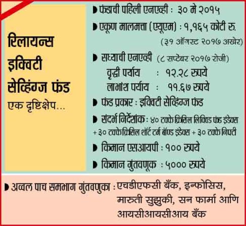 गुंतवणूकदारांचा हा वर्ग मुख्यत्वे त्याकाळी म्युच्युअल फंडाच्या ‘फिक्स्ड मॅच्युरिटी प्लान’मध्ये मोठय़ा प्रमाणावर गुंतवणूक करणारा होता. या गुंतवणूकदारांच्या समुदायासाठी कर कार्यक्षम परंतु कमी जोखमीचा (किमान बँकांच्या मुदत ठेवींइतका परतावा देणारा) पर्याय निर्माण करण्याच्या गरजेतून इक्विटी सेव्हिंग्ज फंड या प्रकारच्या फंडांची सुरुवात झाली. आजचा ‘रिलायन्स इक्विटी सेव्हिंग्ज फंड’ याच वर्गवारीतील आहे. या प्रकारच्या फंडात ६५ टक्क्यांपेक्षा अधिक समभागसदृश गुंतवणूक असल्याने इक्विटी सेव्हिंग्ज फंडातून मिळणाऱ्या भांडवली लाभासाठी (वृद्धी आणि लाभांश) समभाग गुंतवणूक करणाऱ्या फंडांतून मिळणाऱ्या नफ्यावरील कर आकारणीचे नियम लागू होतात. हे नियम गुंतवणूकदारांना दोन प्रकारे लाभदायक ठरतात. या फंडांनी दिलेल्या लाभांशावर लाभांश वितरण कर भरावा लागत नाही. दुसरा फायदा असा की, गुंतवणूक केल्यापासून एक वर्षांनंतरचा काढून घेतलेला भांडवली नफा करमुक्त असतो.