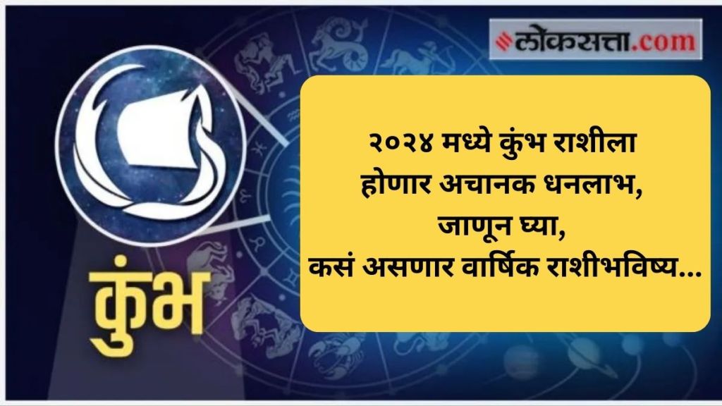 ज्योतिषशास्त्रानुसार कुंभ राशीच्या लोकांसाठी २०२४ हे वर्ष चांगले असणार आहे. कामाच्या ठिकाणी प्रगती होईल. जमीन, वाहन, घर, इत्यादी सुख सुविधा वाढणार. पैसा कमावण्याची संधी दिसून येईल.मेहनतीचे फळ मिळेल.सुख प्राप्ती योग दिसून येईल.जानेवारी ते डिसेंबर या महिन्यात चढउतार दिसून येईल.