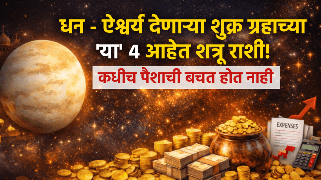 Shukra Shatru Rashi: ज्योतिष शास्त्रात ग्रहांची मैत्री आणि शत्रुत्वाला खूप महत्त्व आहे. सुख-सुविधांचा कारक असलेला शुक्र ग्रह जर आपल्या शत्रू राशींमध्ये बसला, तर त्या व्यक्तीला पैशांच्या आणि मानसिक अडचणींचा सामना करावा लागू शकतो. चला तर मग जाणून घेऊया, धन आणि ऐश्वर्य देणाऱ्या शुक्र ग्रहाच्या चार शत्रू राशी कोणत्या आहेत आणि त्या राशींवर शुक्राचा कसा परिणाम होतो.