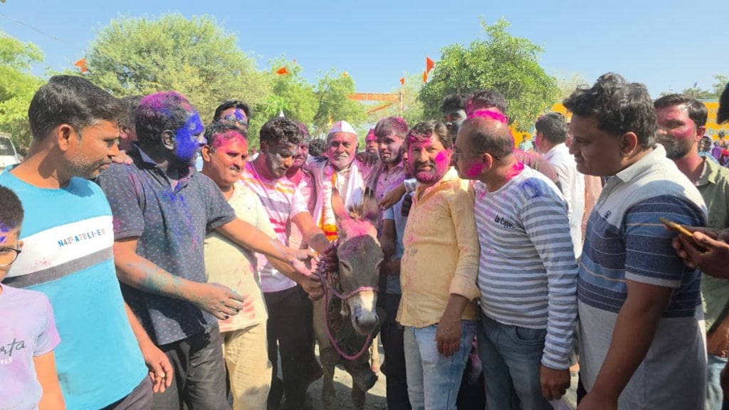 छत्रपती संभाजीनगर – धूळवडीला गावच्या जावयाची गाढवावर (गर्दभ) बसवून वाजत-गाजत मिरवणूक काढण्याची एक अनोखी परंपरा बीडच्या केज तालुक्यातील विडा गावात निजामकाळापासून जपली जाते. यंदा शिवाजी दादाराव गालफडे या जावयाची गर्दभ सवारी काढून ९० वर्षांपासून चालत आलेली ही परंपरा कायम पुढे पुन्हा सुरू ठेवली आहे.