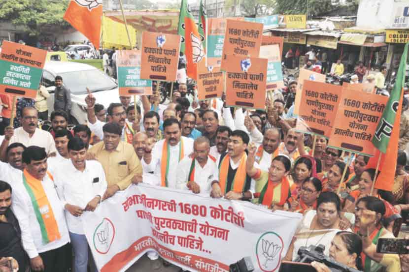 औरंगाबाद : राज्यपातळीवर शिवसेना-भाजपचा काडीमोड झाल्यानंतर त्याचे पडसाद तीव्रतेने उमटू लागले आहेत. औरंगाबाद महानगरपालिकेतून भाजपा सत्तेतून बाहेर पडली आहे. आता शहरासाठीच्या १६८० कोटींच्या पाणीपुरवठा योजनेआडून भाजप नगरसेवक-नगरसेविकांनी महानगरपालिकेवर हंडा मोर्चा काढून प्रवेशद्वारासमोर तासभर ठिय्या मांडला.