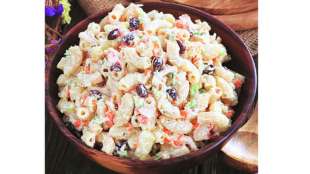 अंडय़ाचे तुकडे आणि वाफवलेली मॅक्रोनी घालावी. सॅलड तयार आहे.