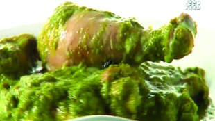 आता हे चिकन नीट शिजवून घ्यावे. ताटावर पाणी घालून ते ताट या पातेल्यावर ठेवून चिकन शिजवावे.