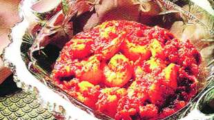 कांदे बारीक कापून घ्या. सुकं खोबरं भाजून बारीक वाटून घ्या. कोळंबी स्वच्छ धुवून घ्या.