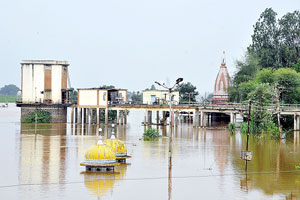 धरणाच्या पाणलोट क्षेत्रात सुरू असलेल्या जोरदार पावसामुळे कृष्णा नदीने सांगली शहरातील सखल भागात असलेल्या काही उपनगरांत शिरकाव केला आहे.