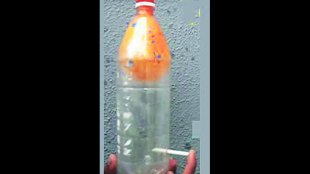बाटलीच्या तोंडातून मध्यम आकाराचा फुगा आत सरकवा आणि फुग्याचे तोंड बाटलीच्या तोंडावर अडकवून टाका
