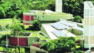 नवी मुंबईलगत असलेल्या सानपाडा येथील डोंगर पोखरून पोखरून निम्मा झालेला दिसतो.