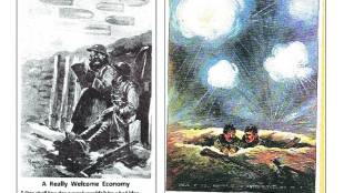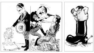 कविता, गाणी, नाटक, चित्रपट यांच्याबरोबरीने व्यंगचित्रांचंही मोठं योगदान युद्धकाळात असतं. शत्रूच्या कृतीची किंवा त्यांच्या नेत्यांची खिल्ली उडवणारी व्यंगचित्रं मुद्दाम काढली…