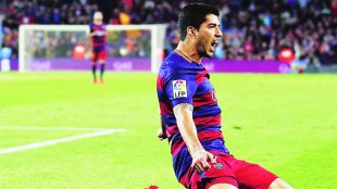 लुइस सुआरेझच्या सुरेख हॅट्ट्रिकच्या जोरावर बार्सिलोनाने ला लिगा स्पर्धेत ऐबार संघावर ३-१ असा विजय मिळवला.
