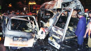 परिसरातील काही घरांच्या काचाही फुटल्या, तर अन्य एका रुग्णवाहिकेला आग लागली.