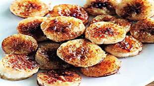 आता एका पसरट भांडय़ात तूप तापवून त्यात हे काप लालसर होईपर्यंत भाजून घ्या.