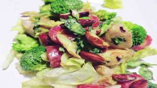 तव्यावर थोडय़ाशा तेलात चिकनचे तुकडे लालसर परतून घ्यावेत. त्यामध्येच ब्रोकोलीचे तुरे आणि अक्रोड-बदामाचे तुकडे परतून घ्यावे.