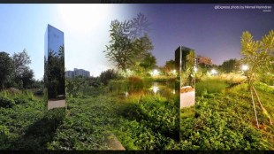 त्रिकोणी आकाराचा हा स्तंभ खूपच चमकदार आहे