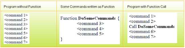 एकदा एक फंक्शन लिहिलं की आपण ते प्रोग्रामच्या मुख्य भागातून कितीही वेळा कॉल करू शकतो. त्याने प्रोग्राममधे त्याच त्याच कमांड्स (commands) पुन:पुन्हा लिहाव्या लागत नाहीत.