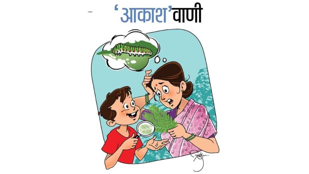 साधारण वरच्या घटनेला १०-१२ दिवस झाले असतील. आकाश अभ्यास करत बसला होता. त्या खोलीला लागूनच बाल्कनी होती. त्याची आई नेहमीप्रमाणे कढीपत्ता आणायला बाल्कनीत गेली. एवढ्यात आकाशच्या कानावर आईचे उद्गार पडले. ‘‘शी, केवढी ही अळी! नशीब मी नीट पाहिलं नाहीतर हातावरच चढली असती!’’ हे ऐकताच आकाश धावत तिकडे गेला.
