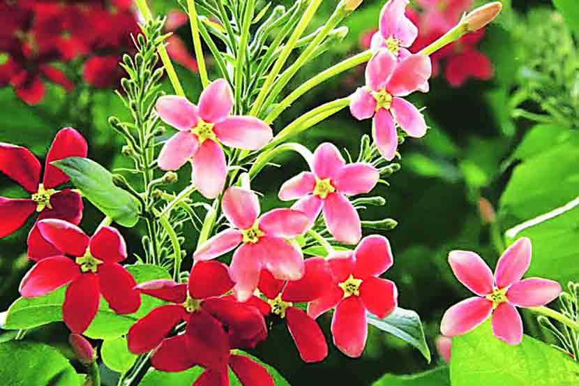 बंगल्याच्या प्रवेशद्वारावर किंवा मंदिर, शाळा यांच्या प्रवेशद्वारावर गोलाकार कमानीवर मधुमालतीची वेल सोडलेली दिसते. या फुलांचा मंद गंध सहज थकवा दूर पळवतो. याची सुंदर सफेद, फिकट गुलाबी आणि गडद गुलाबी रंगाची फुले सुंदर दिसतात.