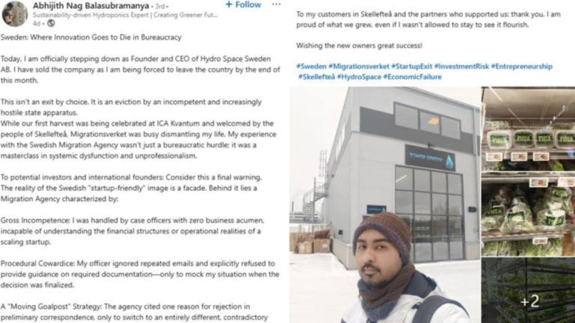 स्वीडनची इमिग्रेशन व्यवस्था अक्षम असल्याचा आरोप करत या उद्योजकाने म्हटले की, त्यांचे प्रकरण हाताळणाऱ्या अधिकाऱ्यांकडे “शून्य व्यावसायिक समज” होती. त्यांनी कागदपत्रांच्या प्रक्रियेबद्दल स्पष्ट मार्गदर्शन केले नाही आणि नाकारण्याची कारणे आपल्या इच्छेनुसार बदलली.