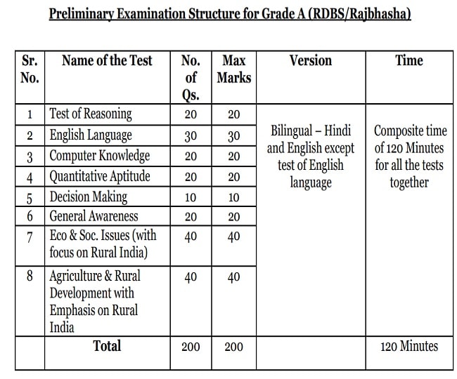 परीक्षेत २०० गुणांचे प्रश्न असतील आणि कालावधी १२० मिनिटे असेल. मुख्य परीक्षेसाठी उमेदवारांची यादी केवळ मेरिट सेक्शनमध्ये मिळालेल्या गुणांवर आधारित असेल.