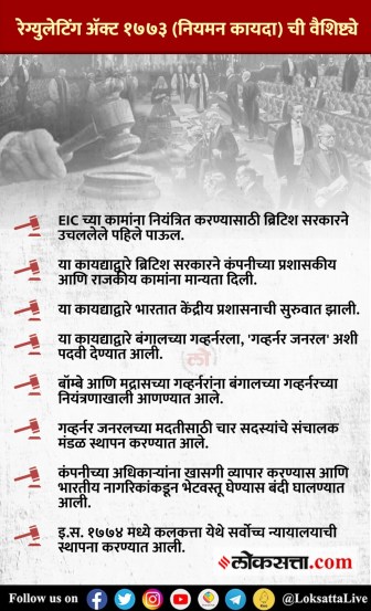 इ.स. १७६४ साली झालेल्या बक्सरच्या युद्धानंतर बंगाल पूर्णपणे ब्रिटिशांच्या नियंत्रणाखाली आला होता. बंगालसारखा समृद्ध प्रदेश ताब्यात आल्यानंतर ईस्ट इंडिया कंपनीची आर्थिक भरभराट होईल, अशी अनेकांची अपेक्षा होती. मात्र, अधिकारी आणि कर्मचाऱ्यांच्या भ्रष्टाचारामुळे कंपनी डबघाईला आली. ब्रिटिश सरकारकडे कर्ज मागण्याइतपत वाईट परिस्थिती कंपनीवर ओढवले. त्यामुळे कंपनीतील भ्रष्टाचार आणि कर्मचाऱ्यांवर नियंत्रण ठेवण्यासाठी ब्रिटिश सरकारने एक कायदा पारित केला. त्यालाच रेग्युलेटिंग ॲक्ट १७७३ या नावाने ओळखले जाते.