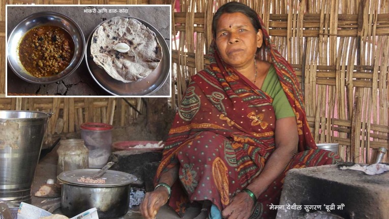 स्वच्छ झोपडी. एका बाजूला चूल मांडलेली आणि एक मध्यम वयाची स्त्री स्वयंपाकाची तयारी करीत होती. अधिकाऱ्यानं सांगितलं होतं, की तिला आम्ही सर्वजण आणि तिच्या गावातले लोकदेखील ‘बूढी माँ’ म्हणूनच ओळखतात. वयाने ३५-४० ची दिसणारी ही स्त्री ‘बूढी माँ’ का बरं असेल? मला आश्चर्य वाटलं. ‘बूढी माँ’ला तिचं घर चालवण्यासाठी हे झोपडीतलं छोटंसं हॉटेल चालवावं लागतं. मोडक्या-तोडक्या हिंदीत आमचा संवाद सुरू झाला. एखाद्या कलाकारानं तन्मयतेनं मातीची मूर्ती साकारावी, तशी दोन्ही हातांच्या साहाय्यानं पिठाच्या गोळय़ापासून सुंदर आकार साकारात चुलीवरची मस्त, खरपूस भाकरी, अगदी साधासाच मसाला घालून लाखेच्या डाळीचा चरचरीत डाळ-कांदा आणि मऊशार लाल भात. साधा आणि तृप्त करणारा स्वयंपाक तिनं माझ्यासाठी केला. तिथे जेवून, थोडा वेळ तिच्याशी गप्पा मारून मी मेमना गावात पोहोचले. तिथल्या अधिकाऱ्यांनी माझ्याबरोबर मदत म्हणून एक कनिष्ठ अधिकारी पाठवला होता. मेमन्याचा आणि इथल्या प्रत्येक गावातला प्रवास म्हणजे स्वर्गच इथे अवतरला आहे, याची वारंवार प्रचीती देणारा होता. या भागात कोरकू हा आदिवासी समाज मोठय़ा प्रमाणावर आहे. आता इथले काही लोक मराठी बोलू लागले आहेत, मात्र जुन्या लोकांना अजूनही मराठी येत नसल्यामुळे त्यांचे पदार्थ, संस्कृती, कला हे मला मध्यस्थांच्या माध्यमातूनच समजून घ्यावं लागत होतं. चारं म्हणजे चारोळी यांच्यात बरीच लोकप्रिय असावी. जसं तिकडे गडचिरोलीमध्ये मोह. चारापासून ते पोळी, खीर, लाडू बनवतात.