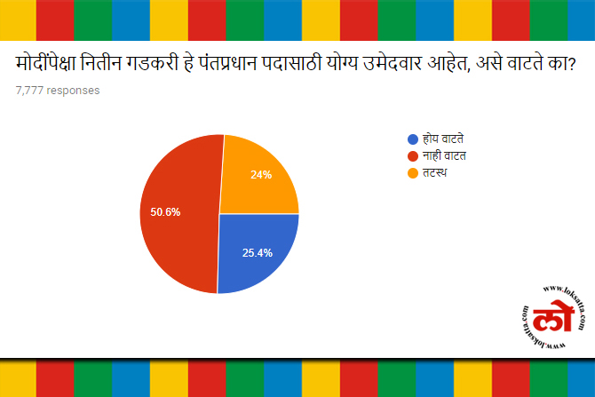 рдПрдХреАрдХрдбреЗ рдЧрдбрдХрд░реАрдВрдирд╛ рд╕рд░реНрд╡рд╛рдд рдкреНрд░рднрд╛рд╡реА рдордВрддреНрд░реА рдореНрд╣рдгреВрди рд╡рд╛рдЪрдХрд╛рдВрдиреА рдирд┐рд╡рдбрд▓реЗ рдЕрд╕рддрд╛рдирд╛рдЪ рдкрдВрддрдкреНрд░рдзрд╛рди рдореНрд╣рдгреВрди рдЧрдбрдХрд░реАрдВрдРрд╡рдЬреА рдореЛрджреАрдЪ рдпреЛрдЧреНрдп рдЕрд╕рд▓реНрдпрд╛рдЪреЗрд╣реА рджреБрд╕рд▒реНрдпрд╛ рдкреНрд░рд╢реНрдирд╛рдЪреНрдпрд╛ рдЙрддреНрддрд░рд╛рдордзреНрдпреЗ рдореНрд╣рдЯрд▓реЗ рдЖрд╣реЗ. ‘рдореЛрджреАрдВрдкреЗрдХреНрд╖рд╛ рдирд┐рддреАрди рдЧрдбрдХрд░реА рд╣реЗ рдкрдВрддрдкреНрд░рдзрд╛рди рдкрджрд╛рд╕рд╛рдареА рдпреЛрдЧреНрдп рдЙрдореЗрджрд╡рд╛рд░ рдЖрд╣реЗрдд, рдЕрд╕реЗ рд╡рд╛рдЯрддреЗ рдХрд╛?’ рдпрд╛ рдкреНрд░рд╢реНрдирд╛рд▓рд╛ релреж.рем рдЯрдХреНрдХреЗ рдореНрд╣рдгрдЬреЗрдЪ рей рд╣рдЬрд╛рд░ репрейрем рдЬрдгрд╛рдВрдиреА рдЧрдбрдХрд░реА рд╣реЗ рдореЛрджреАрдВрдкреЗрдХреНрд╖рд╛ рдЕрдзрд┐рдХ рдпреЛрдЧреНрдп рдЙрдореЗрджрд╡рд╛рд░ рд╡рд╛рдЯрдд рдирд╕рд▓реНрдпрд╛рдЪреЗ рдордд рд╡реНрдпрдХреНрдд рдХреЗрд▓реЗ рдЖрд╣реЗ.