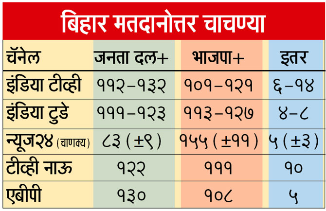 मतदानोत्तर चाचण्यांत राजद-जदयू महाआघाडीला कल * रालोआला धक्का बसण्याची चिन्हे