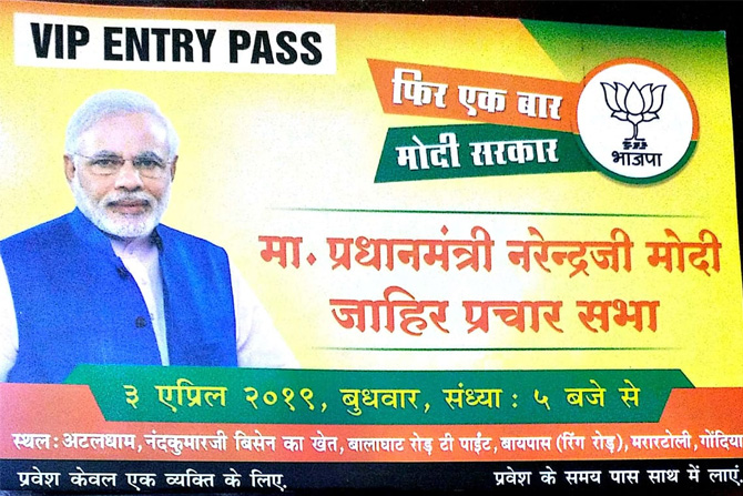 पंतप्रधान नरेंद्र मोदी यांनी गोंदियात बुधवारी सभा घेतली. मेरठ आणि वर्धा येथील मोदींच्या सभेकडे लोकांनी पाठ फिरवल्यानंतर गोंदियातील सभेत भाजपाने गर्दी जमवण्याकडे विशेष लक्ष दिले होते. गोंदियात भाजपातर्फे अनेकांना व्हीआयपी पास वाटण्यात आले होते. व्हीआयपी पास मिळाल्याने अनेक जण सभास्थळी मोदींना पाहण्यासाठी आले होते. वर्धा येथील सभेतही व्हीआयपी पास छापण्यात आले होते. मात्र, तो आकडा १५० ते २०० इतका होता, असे समजते. पण गोंदियात मात्र हजारो व्हीआयपी पास छापण्यात आल्याचे समजते. याबाबत भाजपाच्या नेत्यांशी संपर्क साधण्याचा प्रयत्न केला असता, त्यांनी नेमका आकडा उपलब्ध नसल्याचे ‘लोकसत्ता ऑनलाइन’ला सांगितले. गर्दी जमवण्यासाठी भाजपाने ही नवी शक्कल लढवल्याचे सांगितले जाते.
